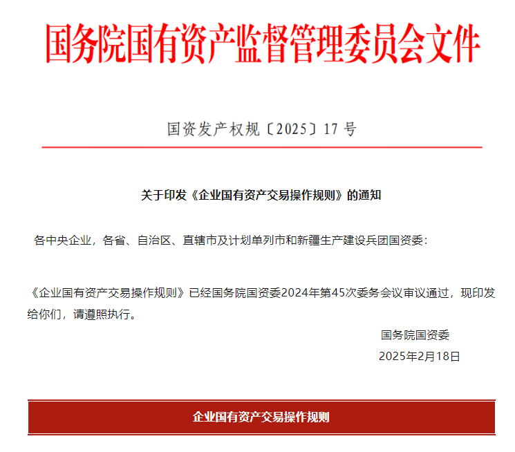 為進一步完善企業國有資產交易制度,提升國有資產流轉配置效率和規范性,近日,國務院國資委修訂印發了《企業國有資產交易操作規則》(以下簡稱《規則》)。此次《規則》修訂主要體現在以下方面:
